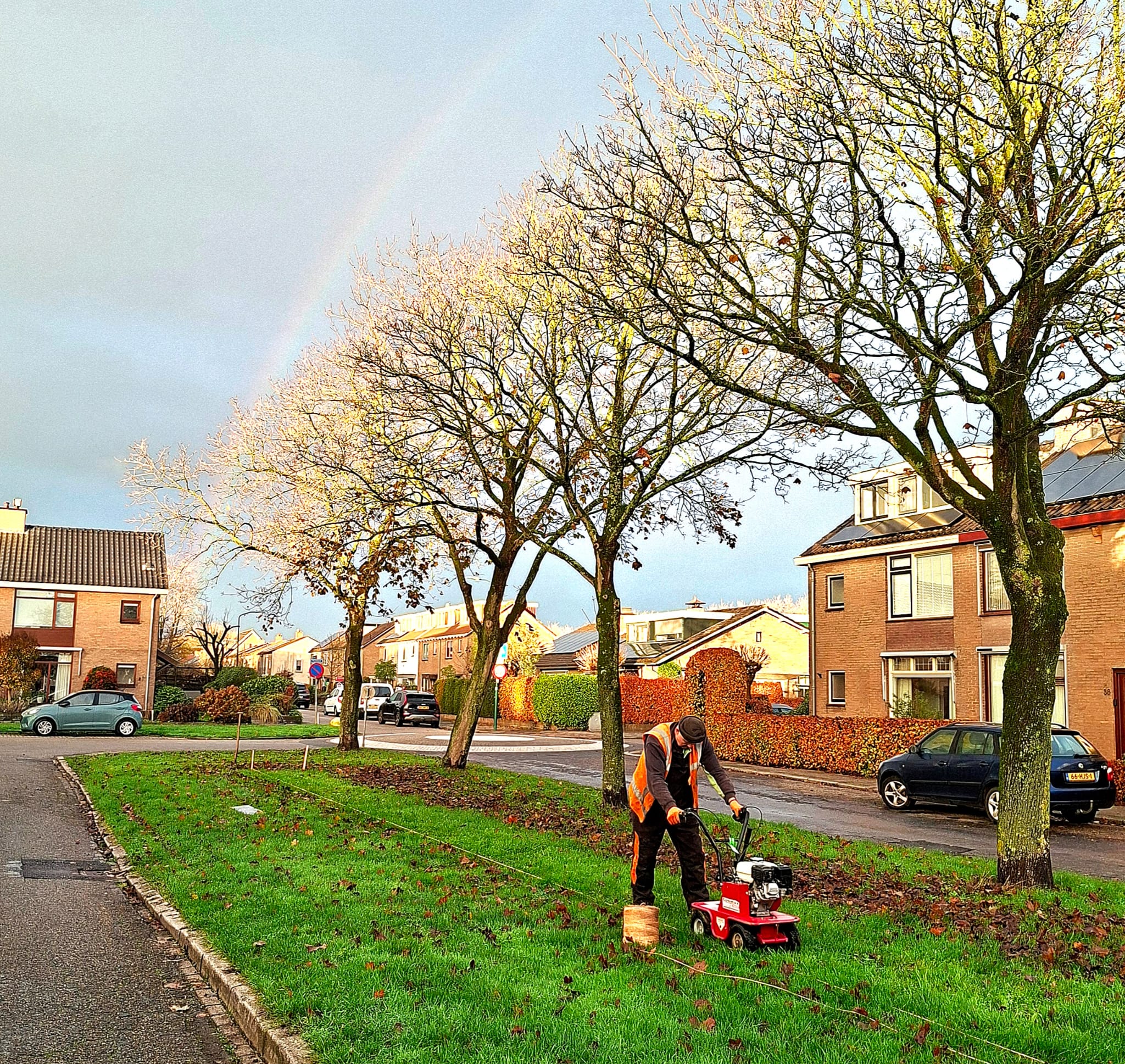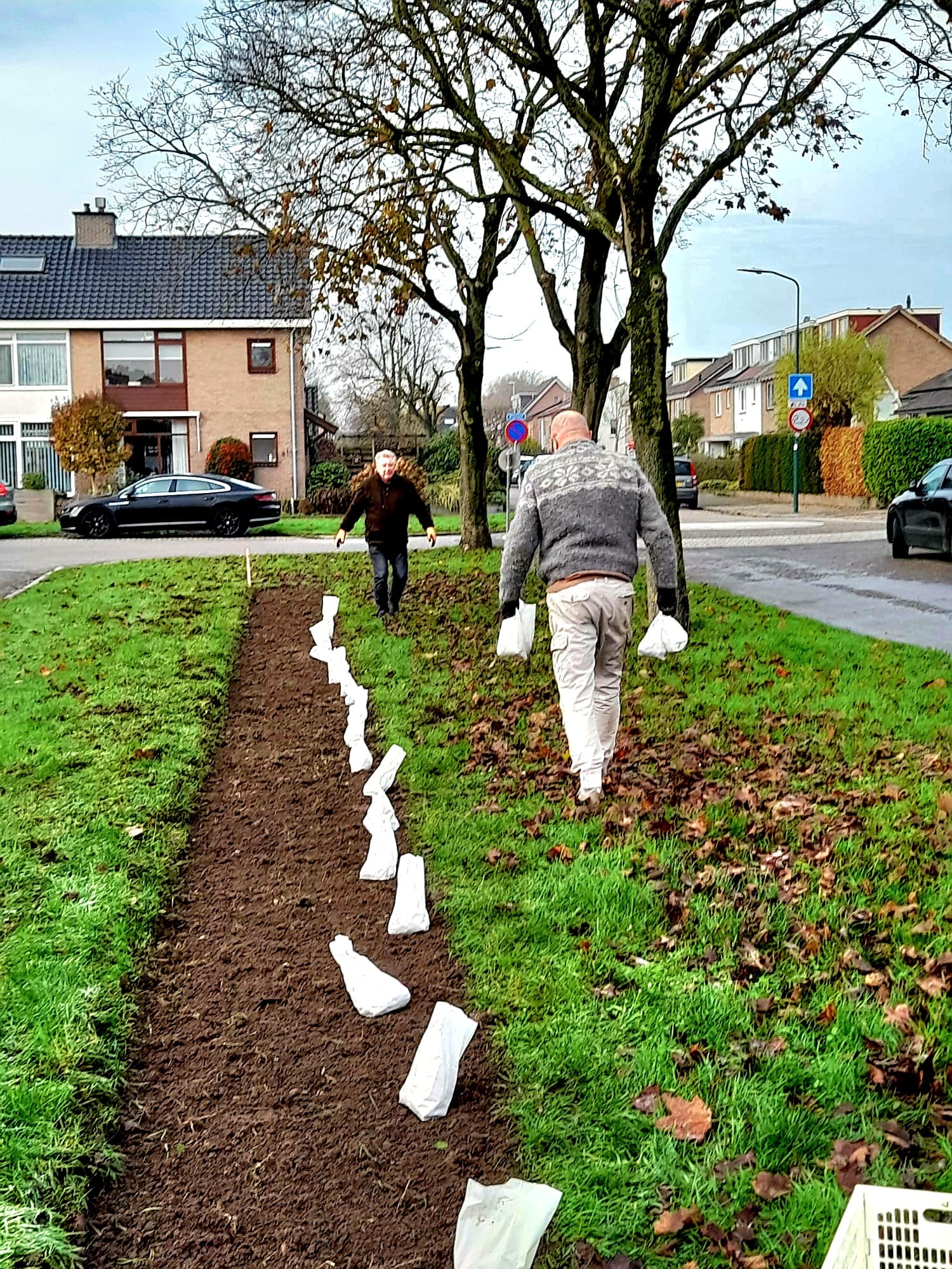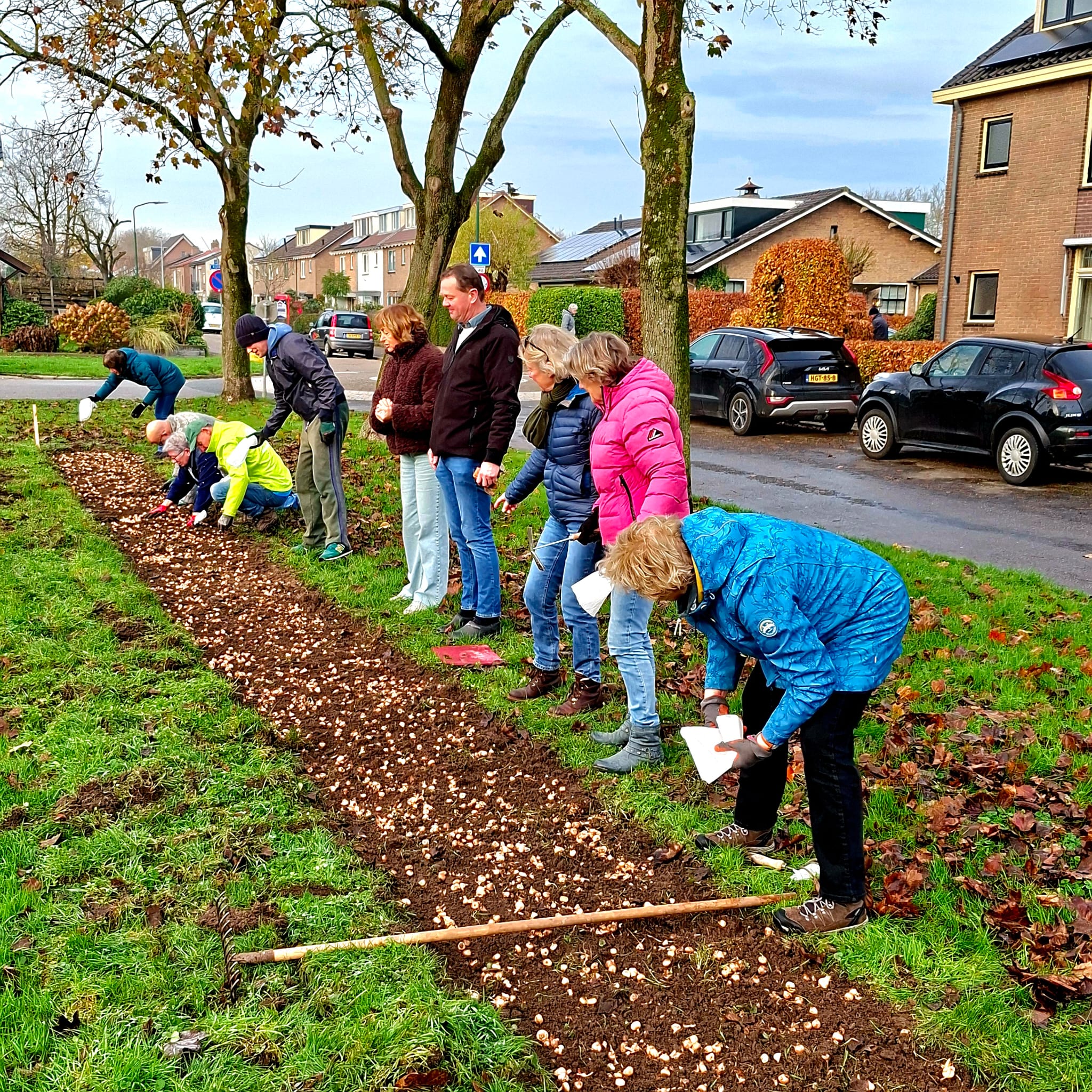 In de groenstrook van de Esdoornlaan in Harmelen is iets bijzonders gebeurd: samen hebben bewoners maar liefst 4700 krokusbollen geplant.